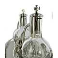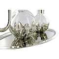 Ampolline in vetro soffiato capacità 100cc su vassoio in ottone "Abbraccio" nichel .