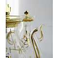 Coppia di ampolline in vetro soffiato con beccuccio e decoro dorato con capienza di 100cc. Il vassoio in vetro è decorato in oro e i coperchi sono in ottone dorato. Prodotto interamente in Italia.