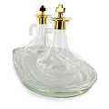 Coppia di ampolline (capienza di 50 cc l'una) in vetro spesso, con coperchio in ottone color oro e vassoio in vetro. Aspetto molto lineare e semplice, stile tradizionale. Prodotto in Italia.