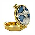 Teca in metallo dorato con smalto, modello Ecce Homo. Diametro 4 cm. Realizzata in Italia.