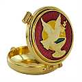 Teca in metallo dorato con smalto, modello COLOMBA. Diametro 4 cm. Realizzata in Italia.