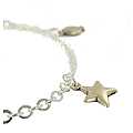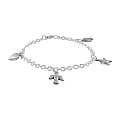 Braccialetto realizzato con catena in metallo argentato a maglia larga nella quale sono inseriti dei ciondoli raffiguranti: la colomba dello Spirito Santo,il pesce simbolo dei primi cristiani,il cuore simbolo dell'amore e la stella.