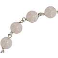 Il bracciale decina è incatenato a girello con filo in argento 925 e con 11 grani in quarzo rosa. Una medaglietta in argento che misura cm 1 e rappresenta la Vergine Miracolosa chiude il bracciale.