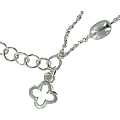 Il braccialetto ha doppia catena in argento, impreziosito da 9 grani ovali da 2 mm. Il braccialetto è arricchito da un pendente traforato a forma di trifoglio. La lunghezza misura 18 cm e la circonferenza è di 14 cm. Il peso è 3 gr.