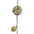 Questo delizioso braccialetto in argento 925% si presenta con al centro una delicata immagine della Madonna con il bambino stampata su porcellana del diametro di cm 1,3 e incastonata in un profilo di argento lucido.