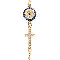 Braccialetto con croce e medaglia con strass bianchi e blu in argento 925 con bagno in oro giallo