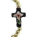 Braccialetto cloisonnè con 21 grani e croce di altezza 2 cm con base di colore nero con robusto elastico.