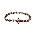 Braccialetto con elastico cloisonnè con 21 grani e croce di colore rosso