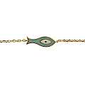 Braccialetto con piccolo pesce smalto azzuro in argento 925 con bagno in oro giallo