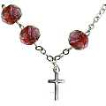 Braccialetto con grani in vetro pressato sfaccettato di colore rosa con fiori rilegato in argento.
