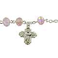 Braccialetto rosario con 11 grani in cristallo di colore rosa e croce di misura 2 cm.
