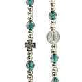Braccialetto con sfere sfacettate in semicristallo e acciaio con medaglia e croce di San Benedetto dotata di