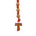 Braccialetto decina in corda di colore rosso caratterizzato da nodini posti fra un grano e l'altro.