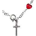 Braccialetto con 11 grani a forma di piccoli cuoricini di 0,5 cm in vetro rosso.