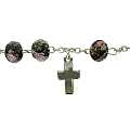 Braccialetto rosario con grani di diametro 7 mm in vetro sfaccettato di colore bianco con fiori di colore