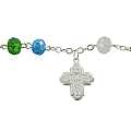 Braccialetto rosario in cristallo con 11 grani sferici schiacciati multicolore e croce di altezza