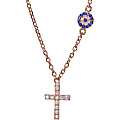 Collana in argento con bagno in oro rosa con croce strass bianchi cm 1,4 e medaglia strass bicolore