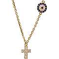 Collana con crocetta cm 0,7 con strass e medaglia in argento 925 con bagno in oro giallo