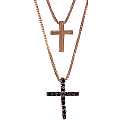 La collana si presenta con due catenine unite alle quali sono appese due crocette.