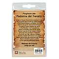 Il blister si presenta con all'interno un cartoncino con la foto della Madonna del Transito e sul retro è stampata una preghiera a lei dedicata.