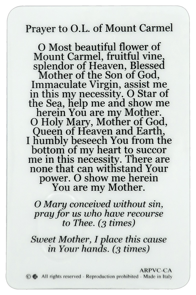 Card Madonna del Carmelo in PVC - 5,5 x 8,5 cm - inglese