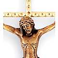 Croce da parete in metallo dorato con Gesù Cristo brunito.