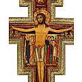 Questa croce in rilievo raffigura il Cristo apparso a San Francesco nella chiesa di San Damiano ad Assisi. Stampata su carta ed applicata su legno di pioppo con rilievo. L'immagine del crocifisso ha i bordi dei personaggi contornati color oro. Ideata per essere appesa alla parete.
