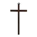 Crocifisso da parete in legno wengé con intarsio in legno yellopan - 20 cm