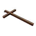 Il crocifisso è in legno wengé con intarsio in legno yellophan. Ideato per essere appeso al muro grazie al gancio sul retro.
