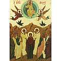 Icona da parete, di forma rettangolare, che raffigura l'Ascensione di Cristo: Gesù è asceso al cielo, circondato da un'aurea celeste e da due angeli che lo adorano. La Vergine Maria, ancora sulla terra, è attorniata dagli Apostoli, il cui sguardo è rivolto al Signore. Due Arcangeli si trovano alle spalle della Vergine e invitano, con la mano alzata, ad ammirare l'Ascensione del Salvatore.