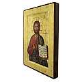 Icona Cristo Pantocratore con libro aperto, Icona in Stile Arte Bizantina, Icona su Legno Rifinita con Aureole, Scritte e Bordure Fatte a Mano, Produzione Greca - 25,5 x 18,5 Cm