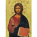 Icona Cristo Pantocratore con libro aperto, Icona in Stile Arte Bizantina, Icona su Legno Rifinita con Aureole, Scritte e Bordure Fatte a Mano, Produzione Greca - 25 x 19 Cm