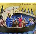 Grande icona da parete che raffigura Gesù coi Discepoli nel noto episodio della tempesta sedata. Vicenda narrata nei vangeli di Marco, Matteo e Luca, la burrasca sul lago dimostra il dominio del Signore sulla natura: Gesù, in compagnia dei suoi discepoli sulla barca, doma la tempesta nel mar di Galilea e li aiuta a superare la difficile situazione.