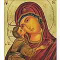 Icona da parete, di forma rettangolare, che raffigura la Vergine della Tenerezza di Vladimir. Si tratta di una copia d'arte bizantina: l'icona originale della Madre di Dio della Tenerezza, a cui questa riproduzione si ispira, fu dipinta a Costantinopoli nel XII secolo ed è conservata a Mosca. Tra le icone ortodosse più venerate al mondo, la Theotókos ("Madre di Dio" in greco) è la figura protettrice della Russia.