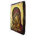 Icona Madonna della Tenerezza, Vergine di Vladimir, Icona in Stile Arte Bizantina, Icona su Legno Rifinita con Aureole, Scritte e Bordure Fatte a Mano, Produzione Greca - 24,5 x 18,5 Cm