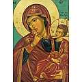 Icona da parete, di forma rettangolare, che raffigura la Vergine della Tenerezza di Vladimir. Si tratta di una copia d'arte bizantina: l'icona originale della Madre di Dio della Tenerezza, a cui questa riproduzione si ispira, fu dipinta a Costantinopoli nel XII secolo ed è conservata a Mosca. Tra le icone ortodosse più venerate al mondo, la Theotókos ("Madre di Dio" in greco) è la figura protettrice della Russia.