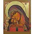 Icona Madonna di Korsun, Icona in Stile Arte Bizantina, Icona su Legno Rifinita con Aureole, Scritte e Bordure Fatte a Mano, Produzione Greca - 14 x 12,5 Cm