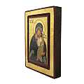 Icona Madre di Dio di Jaroslav, Icona in Stile Arte Bizantina, Icona su Legno Rifinita con Aureole, Scritte e Bordure Fatte a Mano, Produzione Greca - 15,5 x 12 Cm