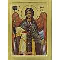 Icona San Gabriele Arcangelo, Icona in Stile Arte Bizantina, Icona su Legno Rifinita con Aureole, Scritte e Bordure Fatte a Mano, Produzione Greca - 24 x 18 Cm