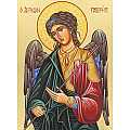 Icona raffigurante l'Arcangelo Gabriele dipinta a mano su legno con fondo oro secondo le tecniche bizantine.