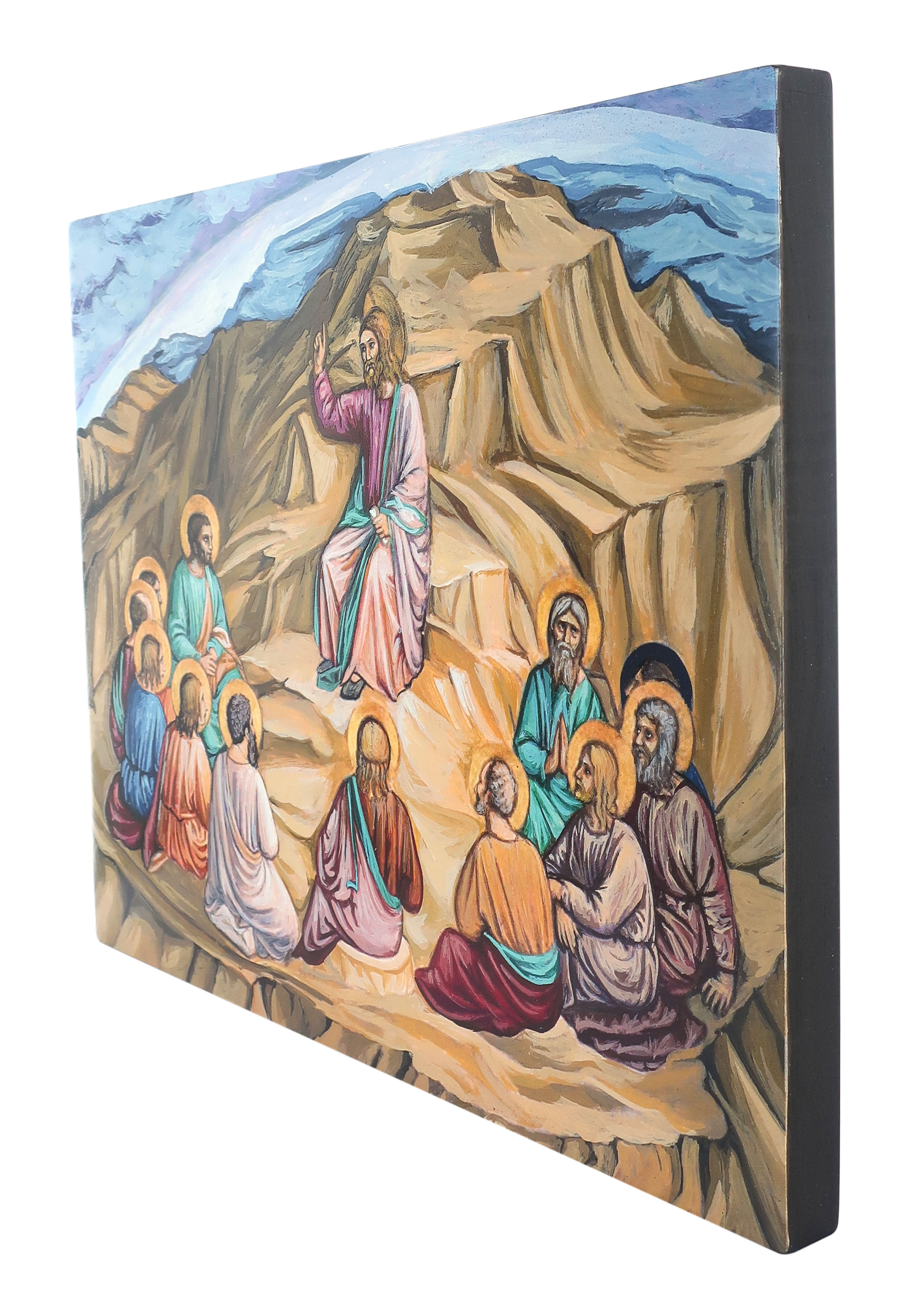 Icona raffigurante "il discorso della montagna" dipinta a mano su legno secondo le tecniche bizantine. Il discorso della montagna è un sermone rivolto da Gesù ai suoi discepoli, riportato nel vangelo secondo Matteo. Si pensa che Gesù abbia rivolto questo discorso su una montagna al nord del mare di Galilea, vicino a Cafarnao.