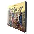 Icona raffigurante la Ditribuzione Pani Pesci dipinta a mano su legno con fondo oro cm 26x32.