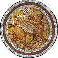 La tavola che rappresenta San Marco si presenta con colori vivaci ed il tipo di lavorazione ricorda il mosaico.