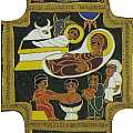 Croce raffigurante la Natività in stile bizantino.