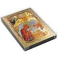 L'immagine è una stampa di carta lucida su legno, con finiture a caldo in oro e in argento.