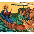 Icona raffigurante la Pesca Miracolosa. Questa immagine è una stampa su tavola in legno.