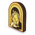 Quadro Madonna della Tenerezza con manto nero stampa su legno ad arco - 15 x 11,5 cm