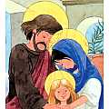 Tavola in legno raffigurante la Sacra Famiglia. L'immagine è una stampa su legno.