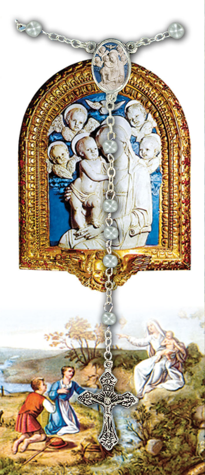Il libretto, composto da 16 pagine, si presenta con una copertina in plastica trasparente e nell'interno vi è un piccolo rosario con i grani tipo perlina del diamero di mm 4.