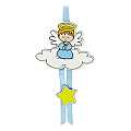 Segnalibro Angelo Custode a forma di cupola con fiocchetto azzurro - 5,5 x 22,5 cm- francese